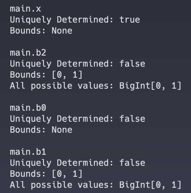 - Witness Verification: This tests if all the witness variables that appear in all equations, and not just input and output variables, collectively are uniquely determined.