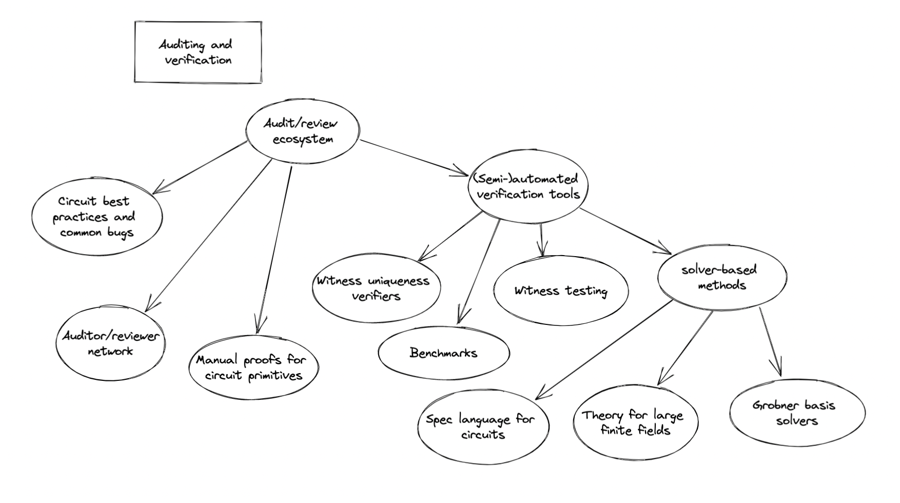 - Establishing best practices for circuit engineering and review. As the ecosystem matures, we will want to develop best practices for building, annotating, documenting, and reviewing ZK circuits. This can be done to varying degrees—specifications in natural language or formal specs are both helpful in making circuits more legible. Enumerating common bugs and mistakes (and building some rudimentary tools for catching these) may also help both engineers and auditors.